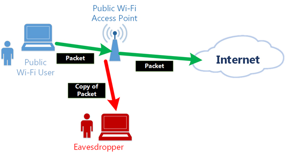 Most public Wi-Fi networks can be eavesdropped by anyone as they are commonly unencrypted. Wired networks are also vulnerable to eavesdropping when applied a technique, for example, ARP spoofing. Moreover, the network administrator or the facility owner may have the opportunity to tap into your communication. Even if you are hooking up to the Internet at your home, there is a risk that the employee of your ISP or telecom company might be wiretapping to observe your plaintext packets. (In fact, there was a criminal incident that an employee of Nippon Telegraph and Telephone Company had wiretapped in the building the company resides. So we can never trust employees of ISPs or telecom companies.)
